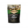 Состав: мука из утки (30%), мука из фазана (22%), желтый горох (20%), куриный жир (консервирован токоферолами, 8%), филе утки (5%), утиная печень (3%), яблоки (3%), крахмал из тапиоки (3%), рыбий жир лососевый (2%), морковь (1%), льняное семя (1%), нут (1%), гидролизованные панцири ракообразных (источник глюкозамина, 0,026%), экстракт хряща (источник хондроитина, 0,016%), пивные дрожжи (источник маннан-олигосахаридов, 0,015%), корень цикория (источник фрукто-олигосахаридов, 0,01%), юкка Шидигера (0,01%), водоросли (0,01%), псиллиум (0,01%), тимьян (0,01%), розмарин (0,01%), орегано (0,01%), клюква (0,0008%), голубика (0,0008%), малина (0,0008%).